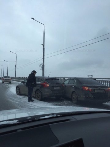 Сегодня утром на мосту Саратов-Энгельс столкнулись две иномарки. По словам очевидцев, авария с участием автомобилей Ford Focus и Toyota Camry произошла на полосе по направлению к Энгельсу. Оба автомобиля получили небольшие повреждения. Однако они перекрыли одну полосу движения, из-за чего на мосту образовалась большая пробка.