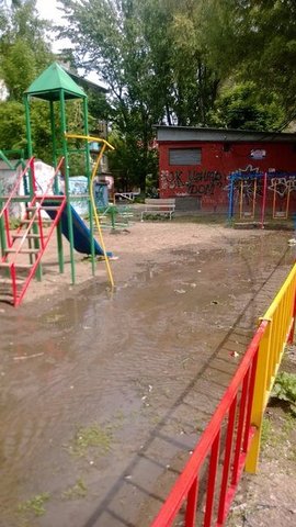 В Саратове на улице Станционная произошла крупная коммунальная авария. По словам очевидцев, в районе железнодорожной больницы на протяжении двух суток течет вода. В результате затопленными оказались детская площадка и двор дома № 6 по 1-му Станционному проезду.