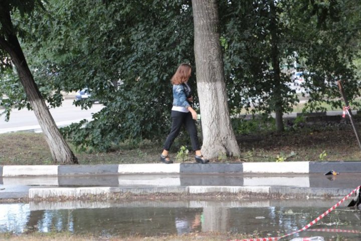 Прохожим и местным жителям приходится аккуратно обходить лужи по бордюрам, чтобы не испачкать одежду и обувь.