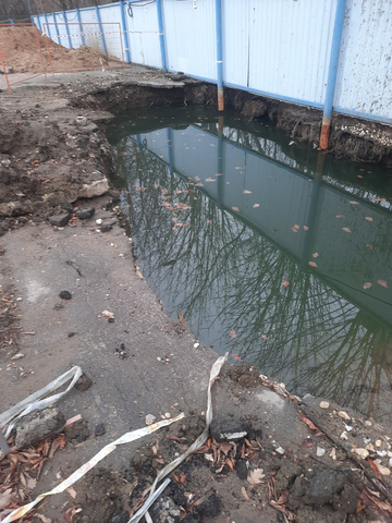 «Открыты трубы водопровода. Они находятся в глубокой открытой яме, залитой водой. С июля они находятся в открытом состоянии. Через четыре дня наступает зима. Уже начались морозы.