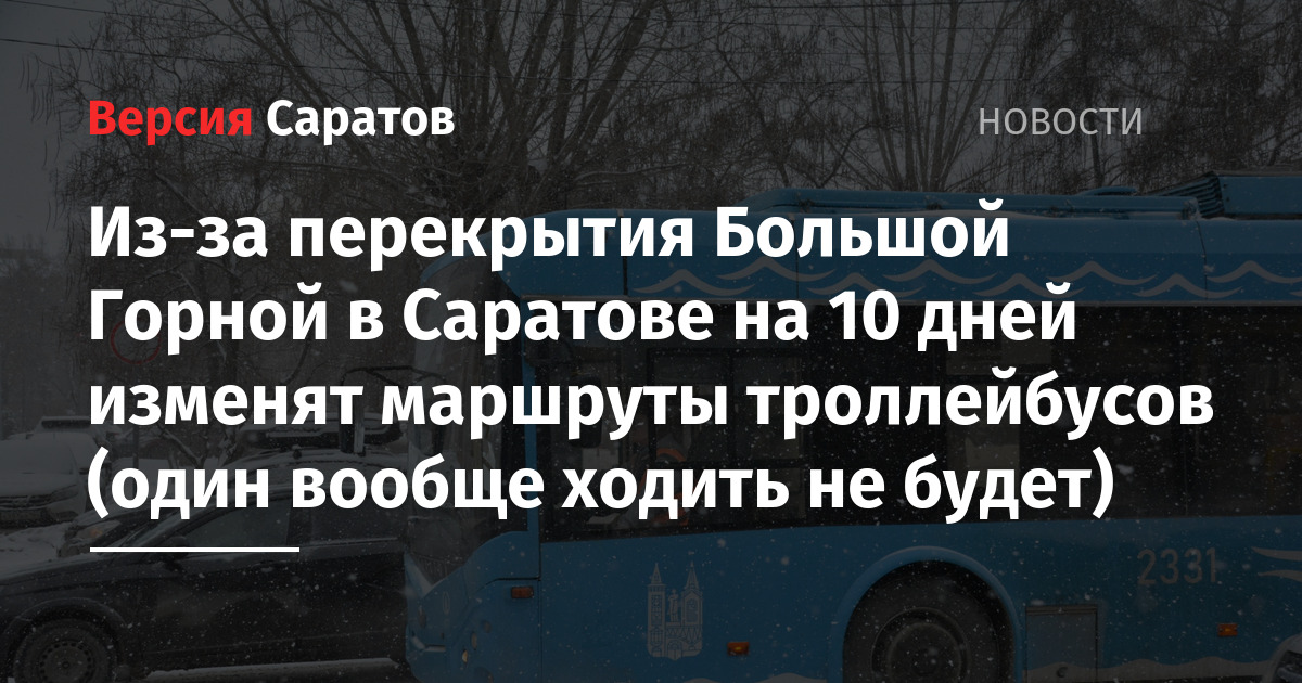 В Саратове из-за перекрытия Большой Горной изменят маршруты троллейбусов. Об этом сообщили в Telegram-канале «Саратов транспортный».