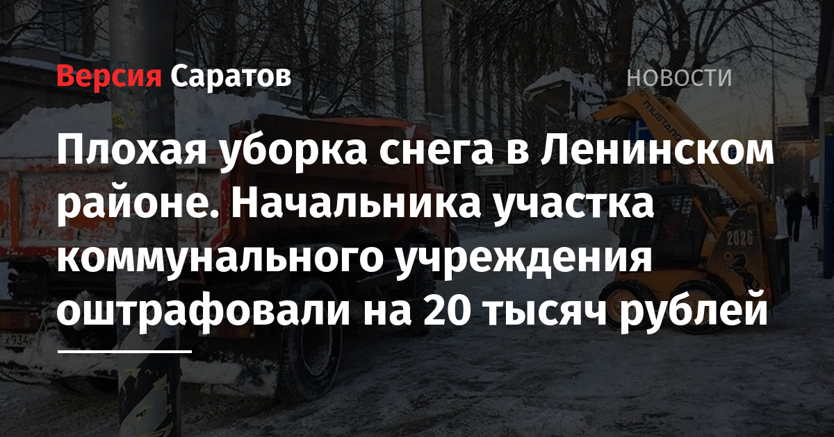 Речь идёт о Ленинском районе. Там выявили нарушения в части уборки снега. В связи с этим начальнику участка базы Ленинского района МБУ «Дорстрой» вынесли постановление о возбуждении дела об административном правонарушении по ч. 1 ст. 12.34 КоАП РФ (Несоблюдение требований по обеспечению безопасности дорожного движения при содержании дорог). В итоге начальника оштрафовали на 20 тысяч рублей.