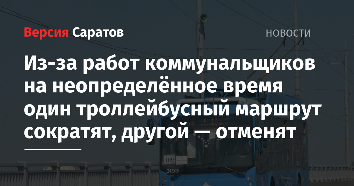 Речь идёт о маршрутах № 5 и № 109. Троллейбусы № 5 будут ходить от улицы Загороднева до Музейной площади. Троллейбусы № 109 сообщением «Саратов — Энгельс» приостановят работу.