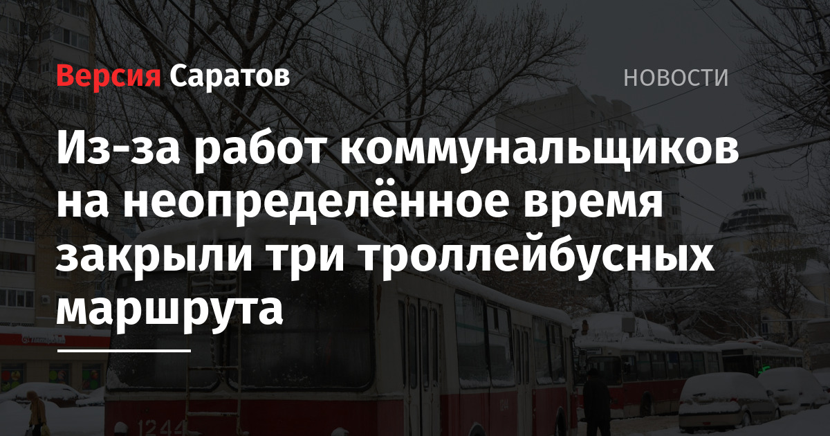 В Саратове на неопределённое время закрыли три троллейбусных маршрута. Об этом сообщили в Telegram-канале «Саратов транспортный», закреплённом за администрацией областного центра.