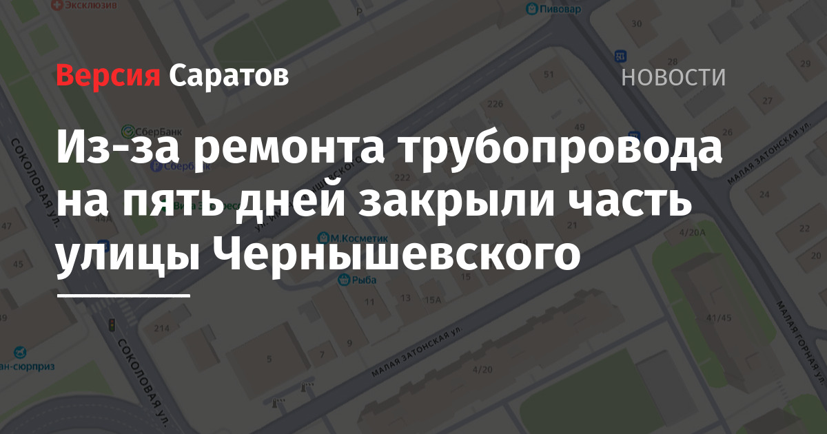 Из-за ремонта трубопровода на пять дней закрыли часть улицы Чернышевского
