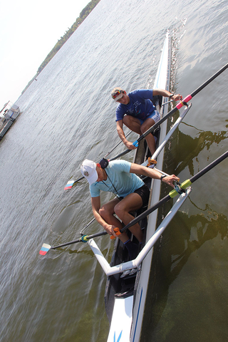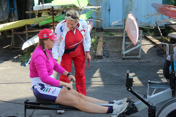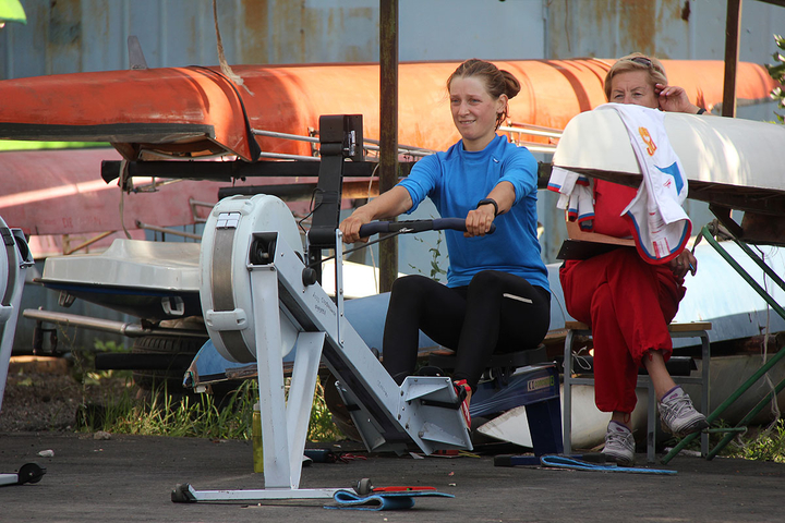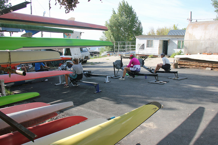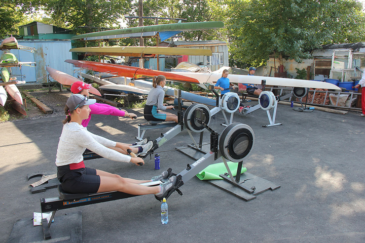 Сегодня утром занятия на базе в поселке Затон были разделены на две части — трое спортсменов сели в лодки, остальные работали на тренажерах. Тренировки проходят под руководством заслуженных тренеров России — Татьяны и Сергея Игнатовых.