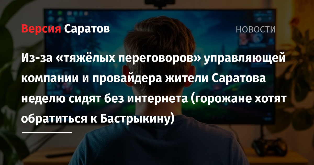 Таким образом, провайдер и УК находятся в процессе «тяжёлых переговоров». В свою очередь обратившиеся в редакцию читатели рассказали, что многие жители указанных домов работают удалённо, и у них нет возможности быстро переключиться на других провайдеров. «Что нам остаётся? Обратиться к председателю СК РФ Александру Бастрыкину, который следит за всем, что происходит в Саратовской области? Или к спикеру Госдумы Вячеславу Володину?» — возмутились горожане.