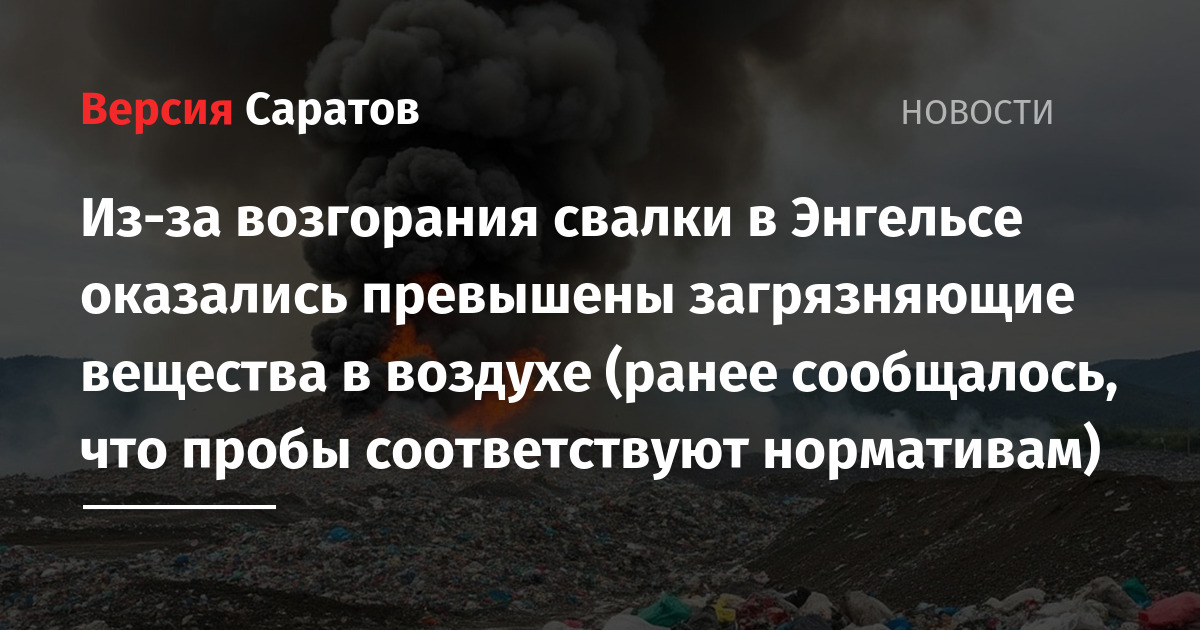 По информации ведомства, в результате эксплуатации свалки отходов в Энгельсском районе происходит возгорание и тление мусора. «Согласно лабораторным исследованиям Управления Роспотребнадзора по Саратовской области и лабораторией ФБУЗ „Центр гигиены и эпидемиологии в Саратовской области“ выявлено превышение загрязняющих веществ в воздухе», — говорится в официальном сообщении.