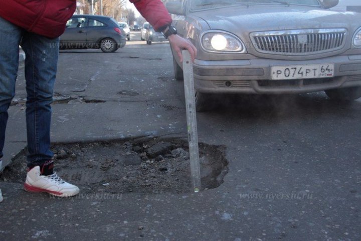 В редакцию ИА "Версия-Саратов" поступают многочисленные жалобы от автолюбителей на состояние дорог в областном центре. По словам водителей, в Саратове невозможно нормально ездить на машине. "Некоторые участки вынужден объезжать по встречке, иначе машину испорчу", - отметил один из водителей.