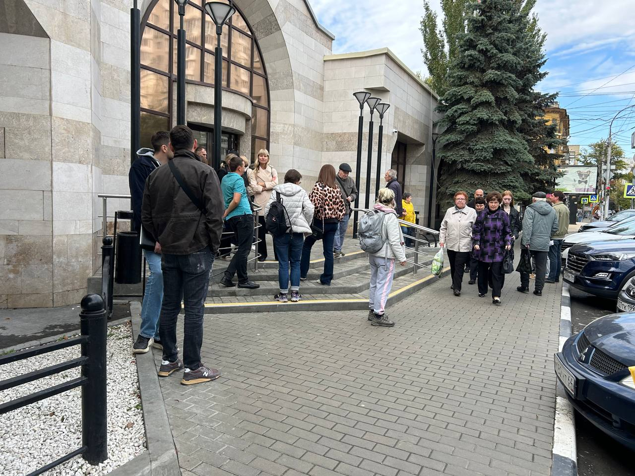 На месте побывал наш корреспондент. С одной стороны здания людей тогда уже начали запускать, с другой — люди стояли на улице. Со стороны Рахова рядом со «Сбербанком» стояла пожарная машина. В ГУ МЧС ситуацию пока что не прокомментировали.