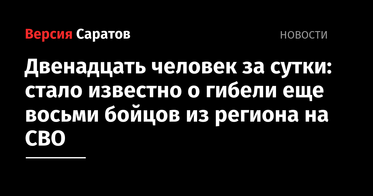 За прошедшие сутки стало известно о гибели в ходе специальной военной операции 12 жителей Саратовской области. Губернатор Роман Бусаргин выразил соболезнования родным и близким военных.