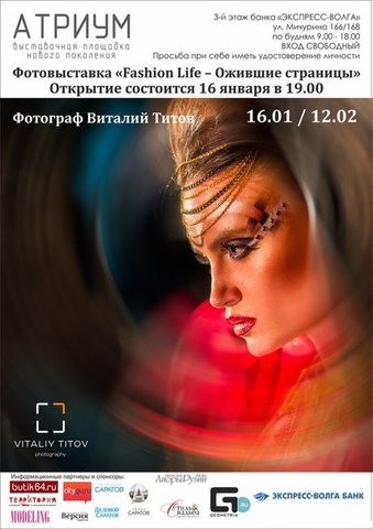 В грядущую пятницу, в 19:00, состоится торжественное открытие выставки работ саратовского фотографа Виталия Титова "FashionLife – Ожившие страницы". Это произойдет на территории выставочной площадки "Атриум" (ул. Мичурина, 166/168, 3 этаж).