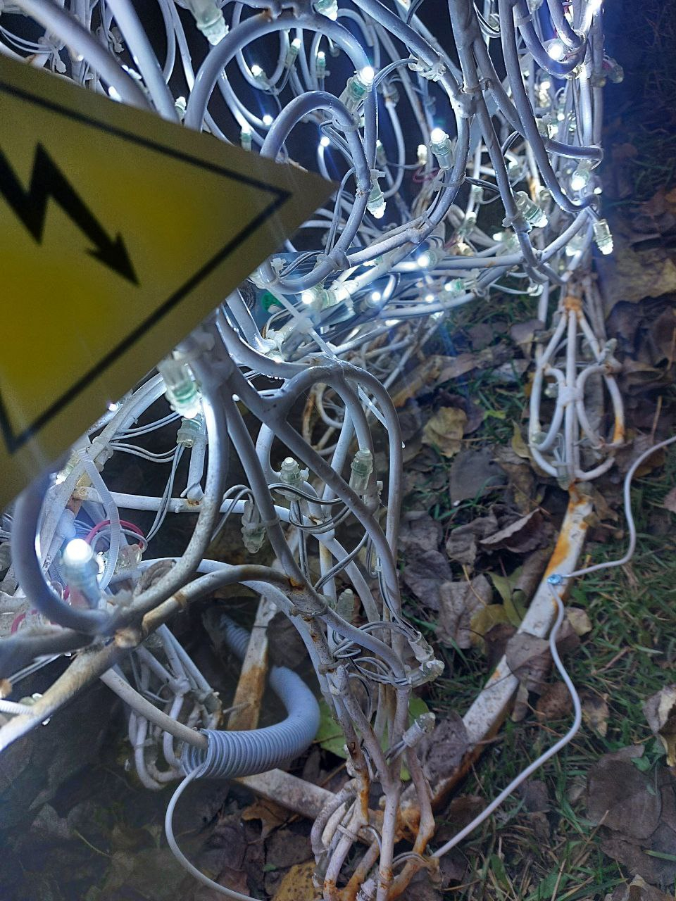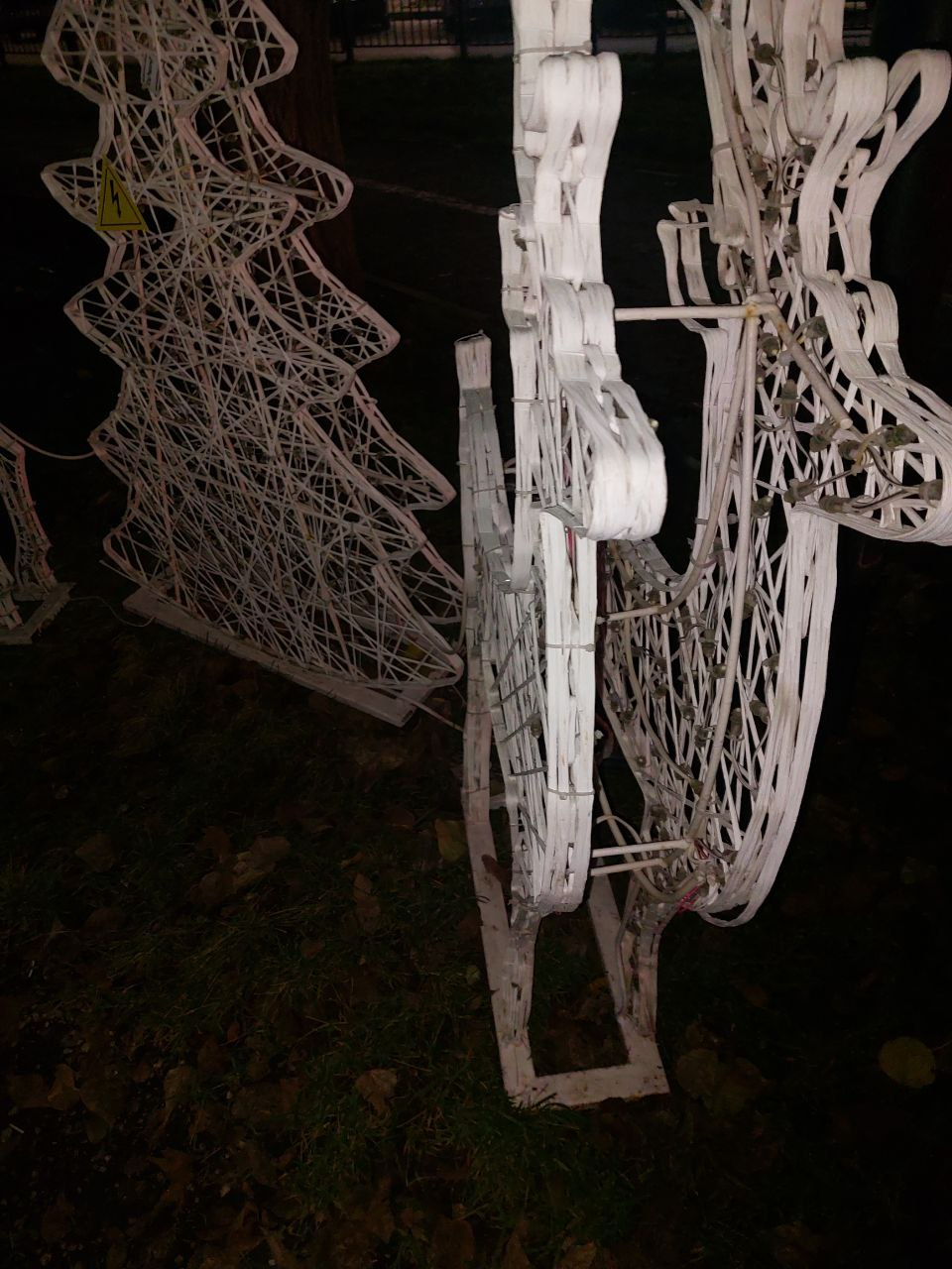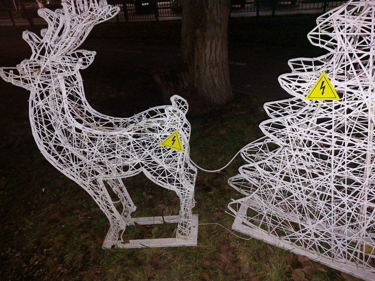 «Поставили ржавые грязные новогодние фигуры с на вид опасной, перемотанной изолентой проводкой. Один олень вообще упал», — рассказал горожанин и предоставил снимки, на которых можно оценить состояние праздничных украшений.