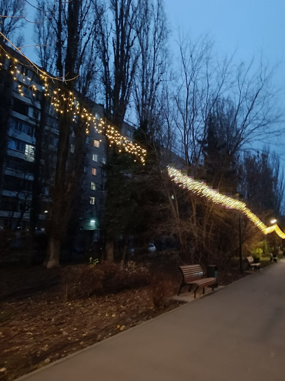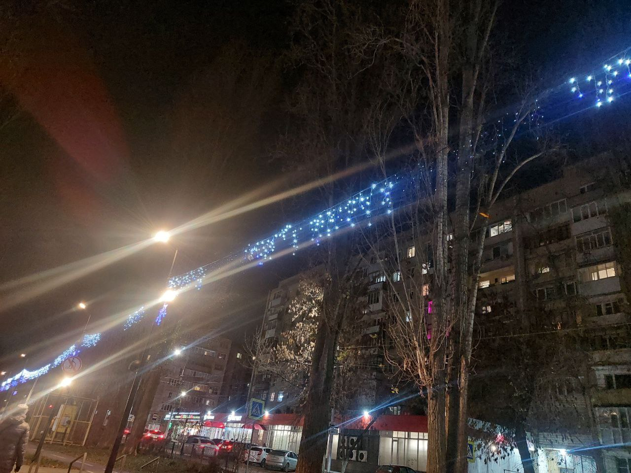 Можно также заметить, что гирлянда на Рахова «облысела»: на некоторых участках лампочки потухли. Следует отметить, что такие гирлянды горожане замечают не только на этой улице. Ранее в чате администрации Октябрьского района на плохо работающую иллюминацию в сквере на 2-й Садовой пожаловалась горожанка Елена.