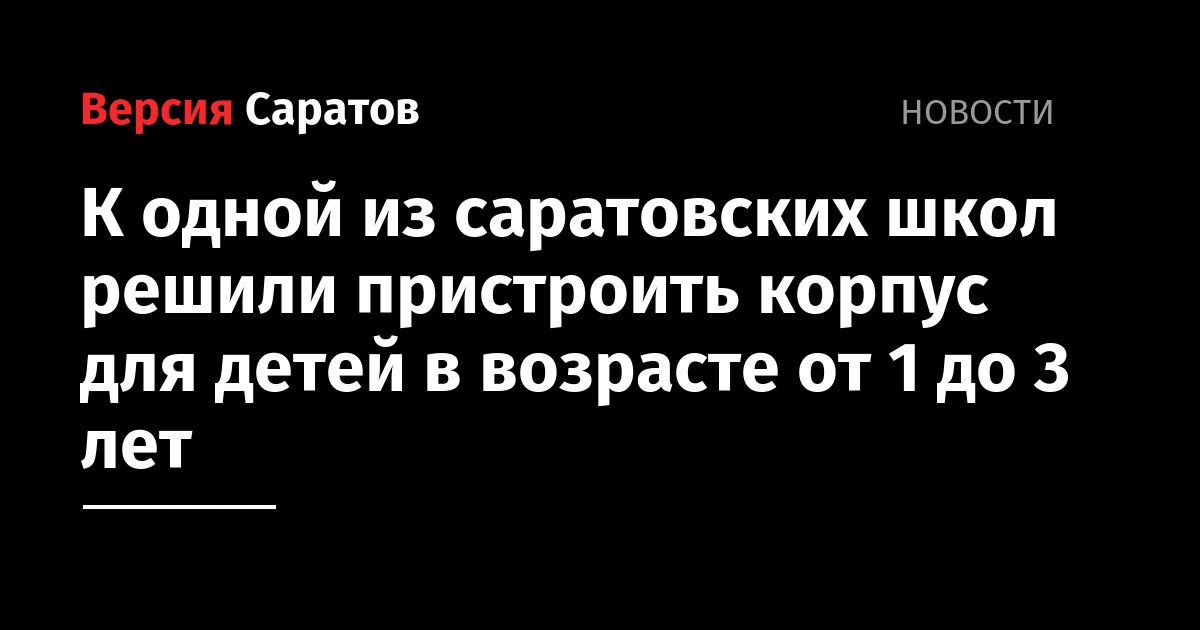 К одной из саратовских школ решили пристроить корпус для детей в возрасте от 1 до 3 лет