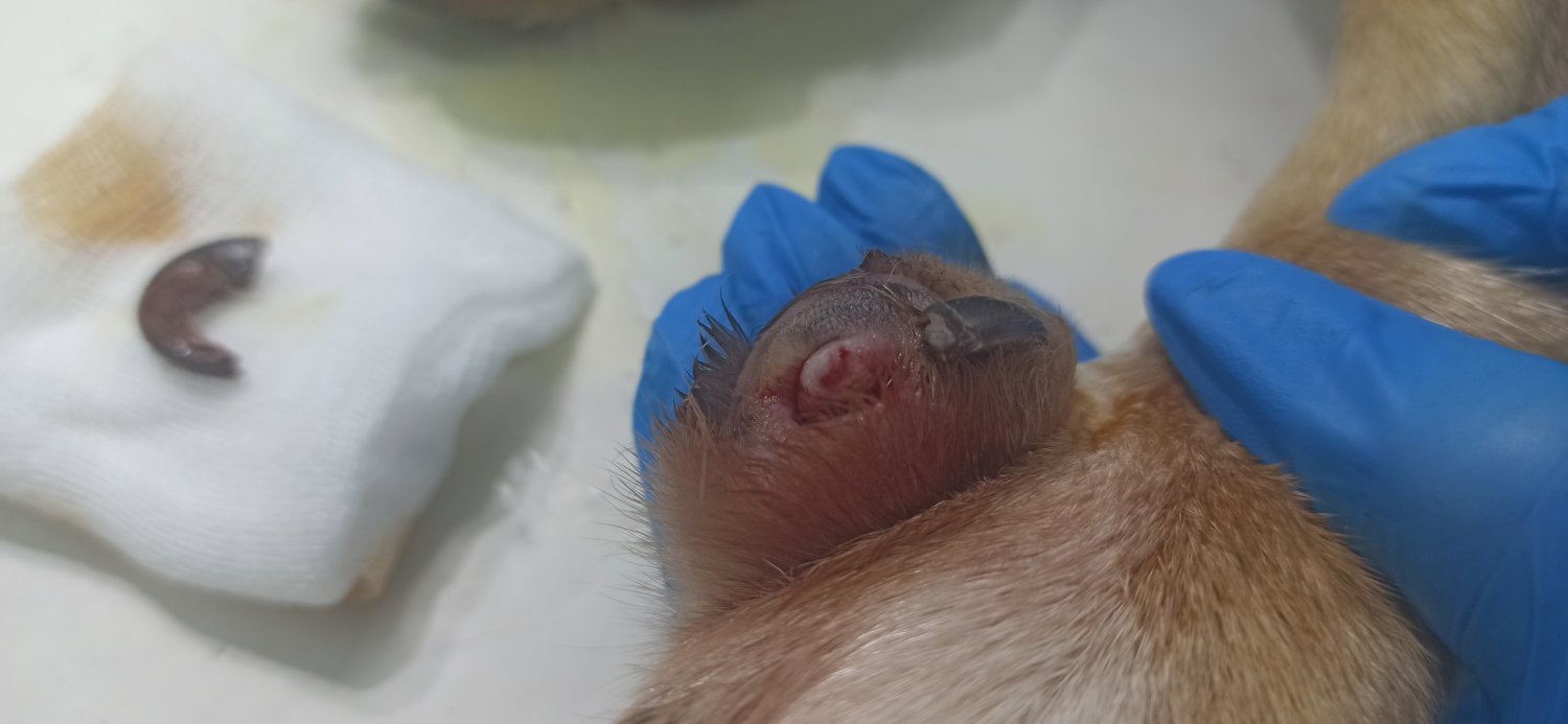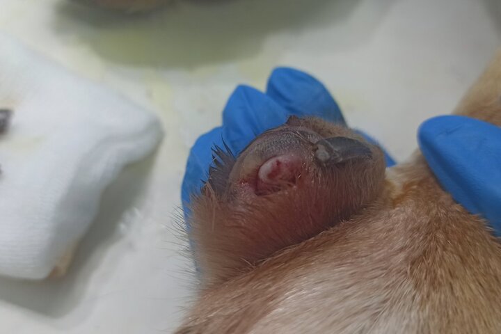 К ветеринарам попала Стрелка с «генетической поломкой», ей удалили коготь