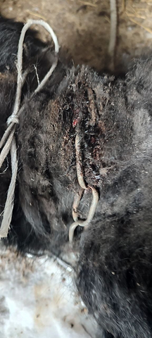 В результате звенья вросли в кожу. При осмотре Пирата было установлено, что три звена вросли на глубину одного сантиметра. Ветеринар рассёк кожу животного для извлечения звеньев цепи и обработал рану растворами антисептиков. Также специалист принял решение не накладывать швы на рану, так как она будет заживать по вторичному натяжению. Владельцам дали рекомендации по уходу и содержанием собаки.