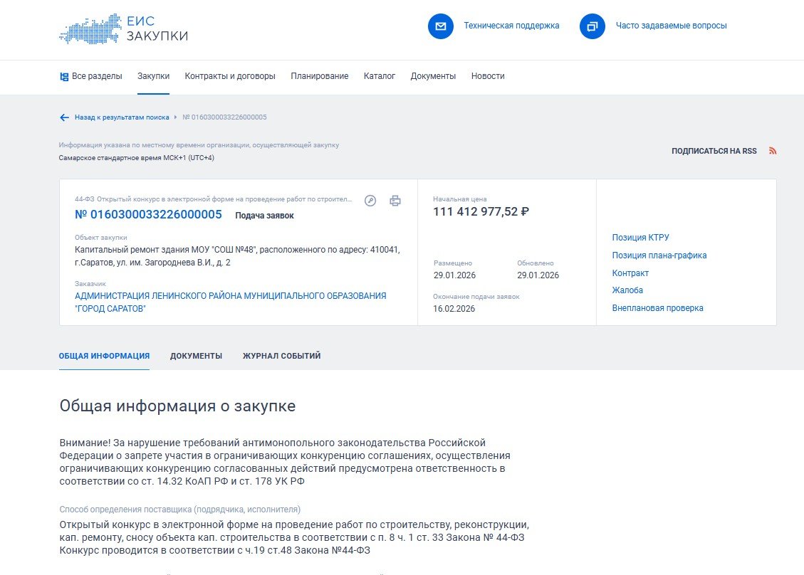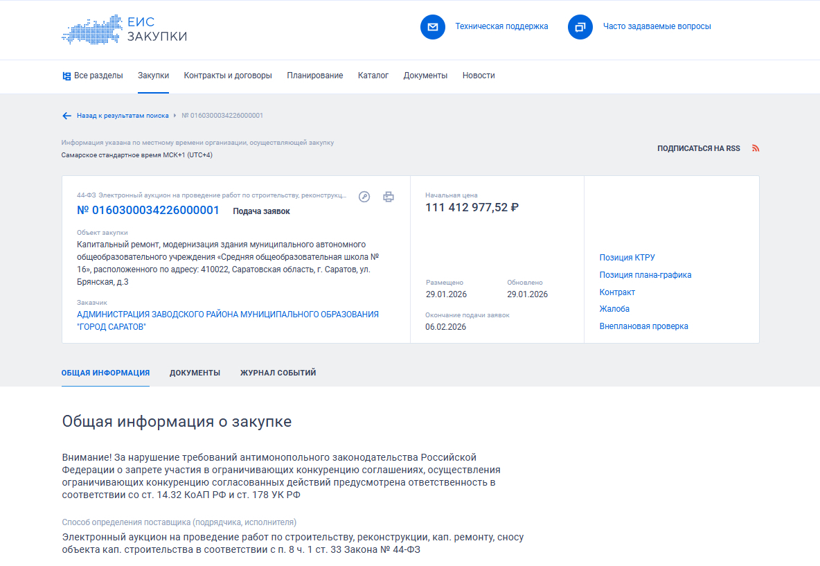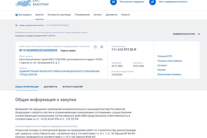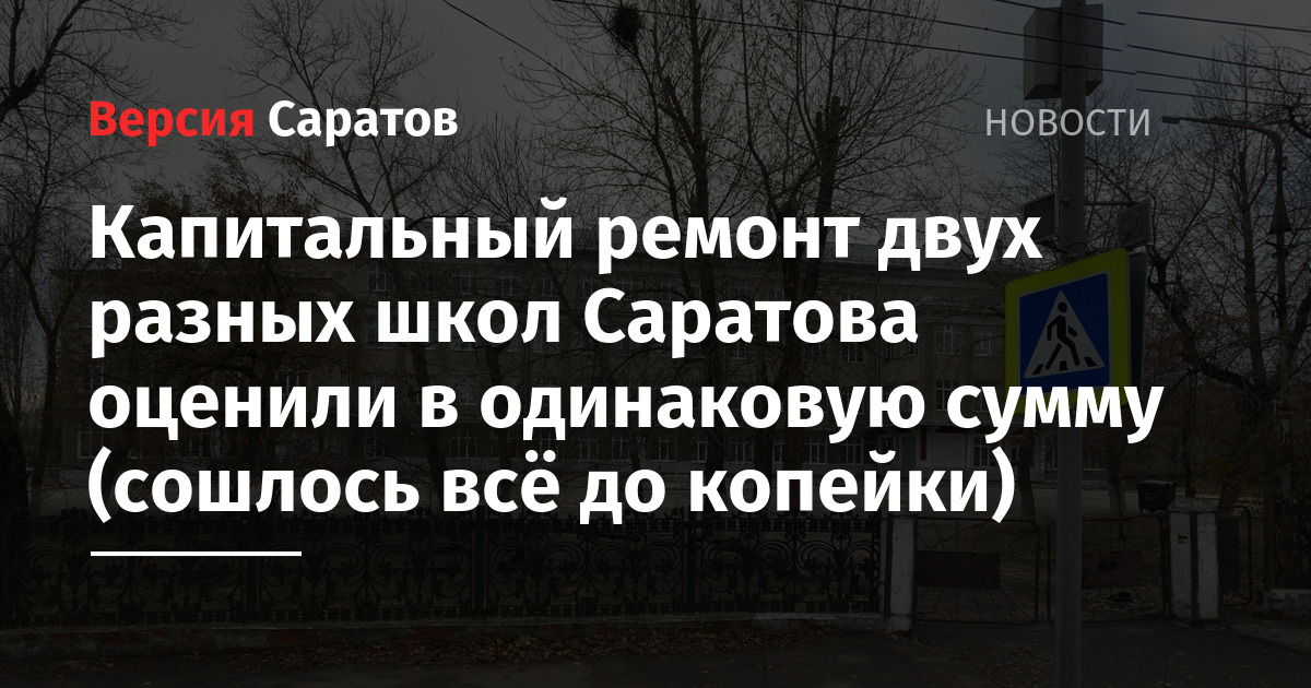 Вчера, 29 января, были объявлены торги на капремонт сразу четырех зданий школ, три из которых находятся в Саратове, одно — в Энгельсе. В Саратове до начала августа нужно отремонтировать школы № 16 (Брянская, 3), 48 (Загороднева, 2) и № 81 (Васильковская, 17). Удивительно, но ремонт школ № 16 и 48 оценен в сумму, которая сходится до копейки — 111 412 977,52 рубля. Заказчиками выступают администрации Ленинского и Заводского районов.