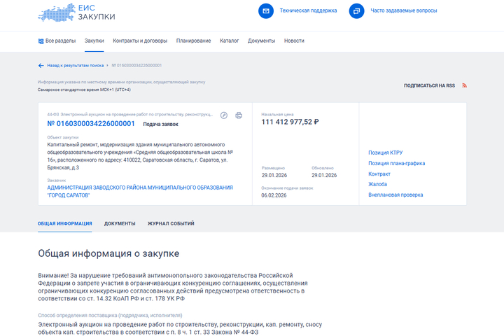 В Саратове и Энгельсе чиновники продолжают объявлять торги на капитальный ремонт школ, который планируется провести в 2026 году. Всего полное обновление ждет 21 школу.