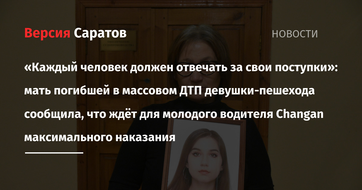 После судебного заседания в Октябрьском районном суде Саратова, на котором рассматривалось дело Глеба Назарова, обвиняемого в ДТП со смертельным исходом, с журналистами пообщалась мать погибшей девушки — Валентина Крикунова. Она пришла на заседание с портретом дочери.