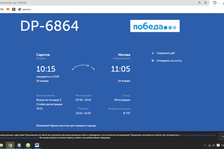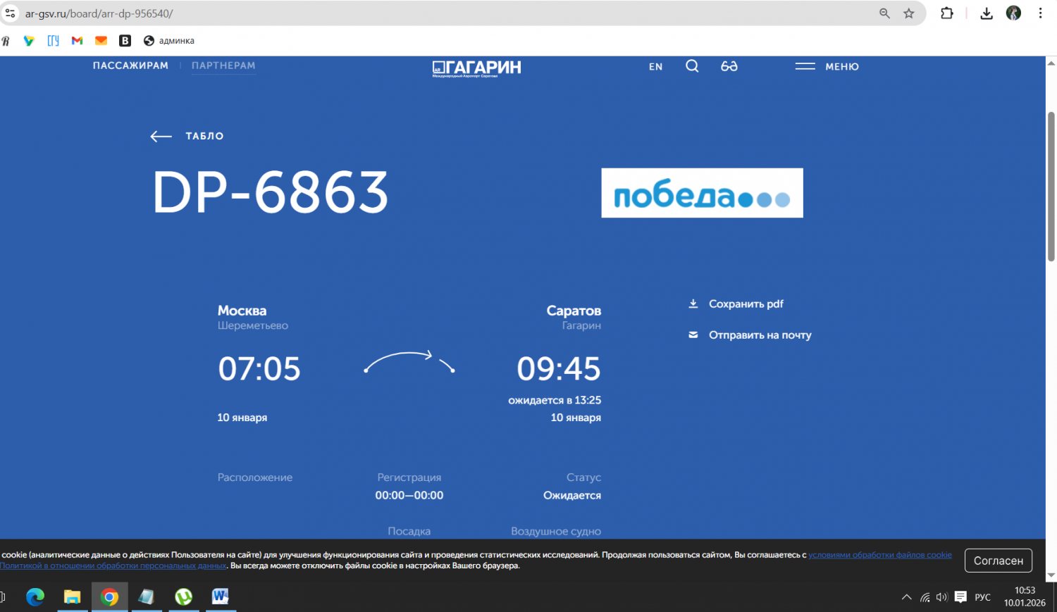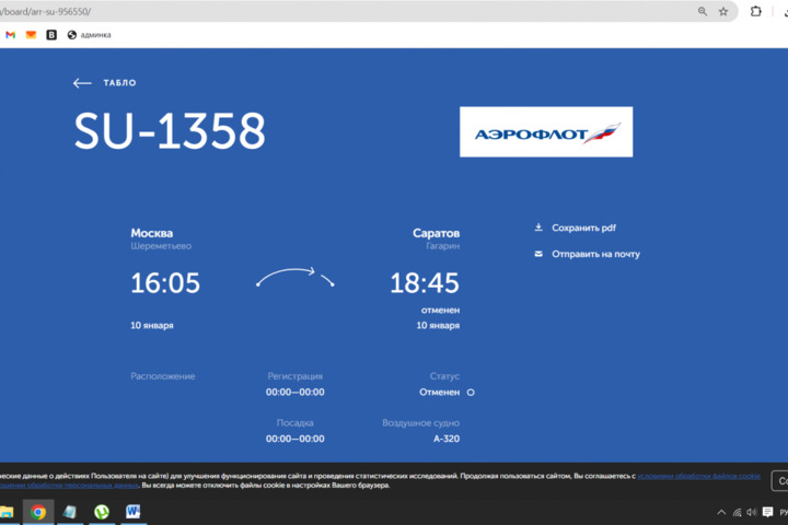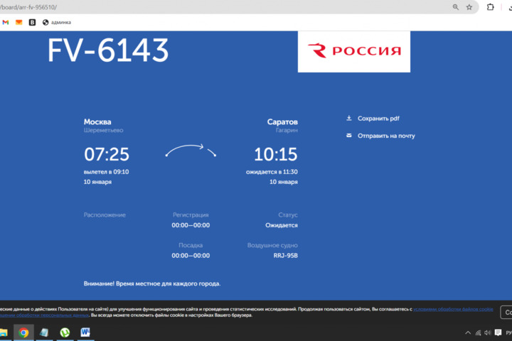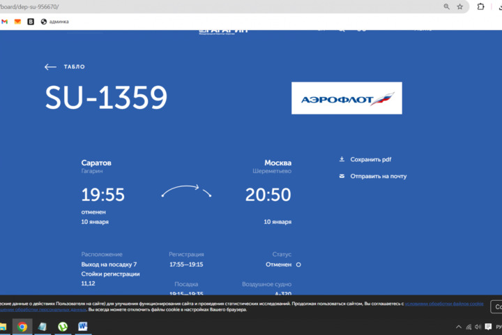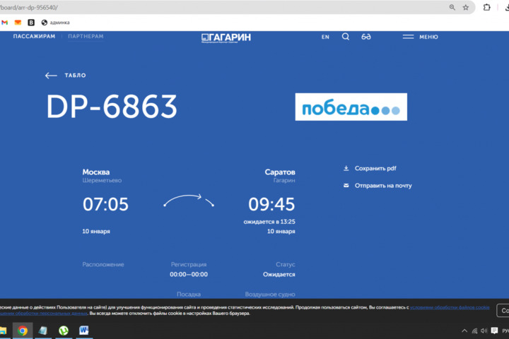 Также наблюдаются задержки и на прилёт самолётов. Один рейс из «Шереметьево» вместо 10:15 ожидается в 11:30, другой — вместо 9:45 в 13:25. Рейс, который вчера, 9 января, должен был прибыть в Саратов из «Шереметьево» в 18:45, отменили.