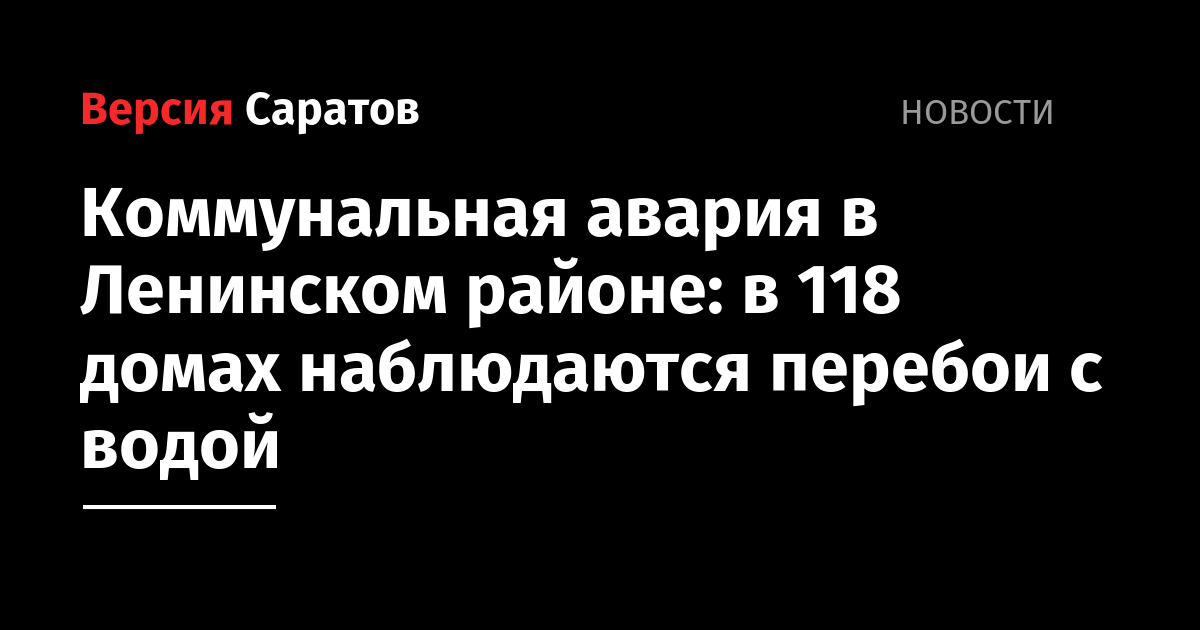 В компании «Концессии водоснабжения — Саратов» заявили, что работы планируется завершить до 20.00. В организации также уточнили зону ограничения: Лунная (от Лесной Республики до Офицерской), Лесная Республика, Школьная, Зоологическая, Деловая, Вишневая, Офицерская (от Лунной вверх). «Возможны перебои с подачей ХВС жителям верхних этажей многоквартирных домов, попавших в зону снижения параметров», — добавили в «КВС».