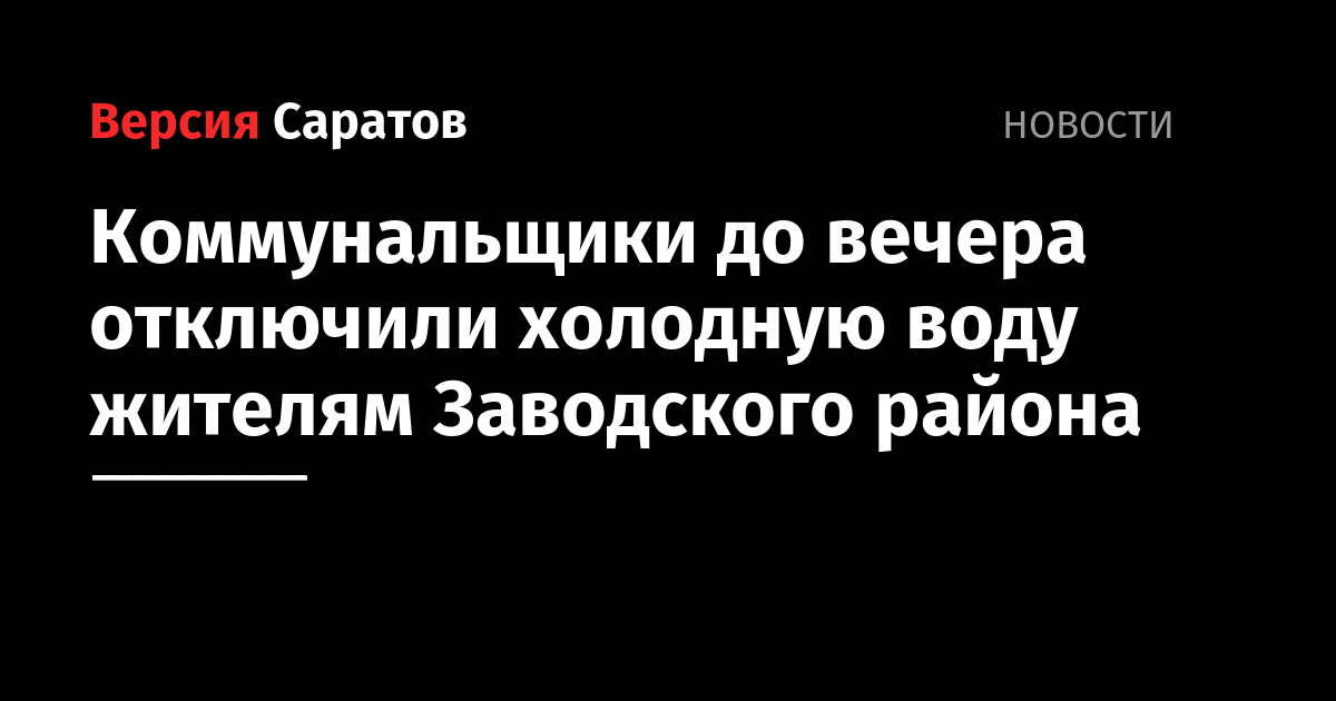 Сегодня до вечера не будет холодной воды в домах Заводского района. Об этом сообщает пресс-служба ООО «Концессии водоснабжения — Саратов».
