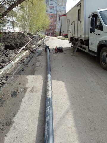 Также заменен изношенный водопровод по 2-му Детскому проезду, 55/57. Старый стальной трубопровод имел значительную степень износа и к настоящему времени полностью исчерпал свой эксплуатационный ресурс. Многочисленные аварийные ситуации приводили к подтоплению дворовой территории, близлежащих улиц, тротуаров, автомобильных дорог, перебоям в подаче холодной воды потребителям. В связи с высокой аварийностью трубопровода руководством предприятия было принято решение о его перекладке. На время проведения мероприятий по замене для водоснабжения потребителей была смонтирована временная водопроводная линия.