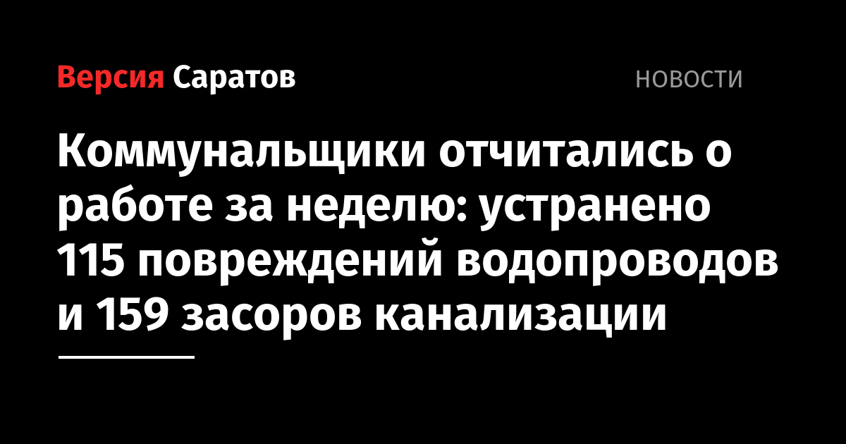 Коммунальщики отчитались о работе за неделю: устранено 115 повреждений водопроводов и 159 засоров канализации
