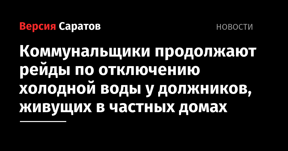 Специалисты ООО «Концессии водоснабжения — Саратов» продолжают работы по отключению холодного водоснабжения абонентов частного сектора, имеющих задолженность за услуги компании. Рейды проходят в разных районах города.