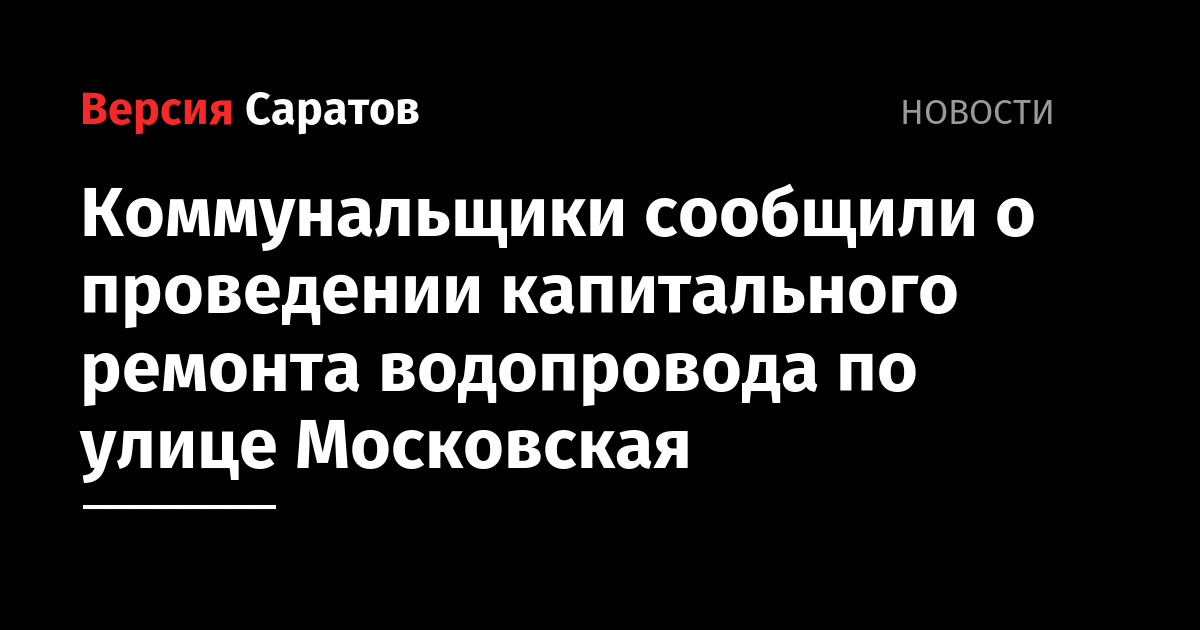 Коммунальщики сообщили о проведении капитального ремонта водопровода по улице Московская