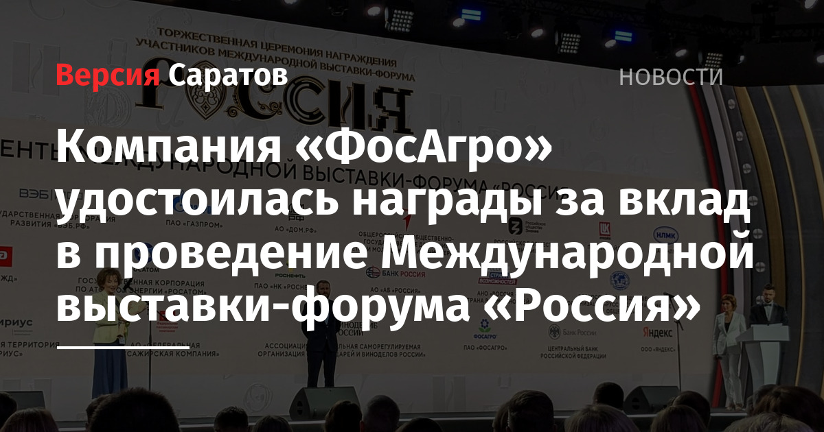 Компания «ФосАгро» удостоилась награды за вклад в проведение Международной выставки-форума «Россия»