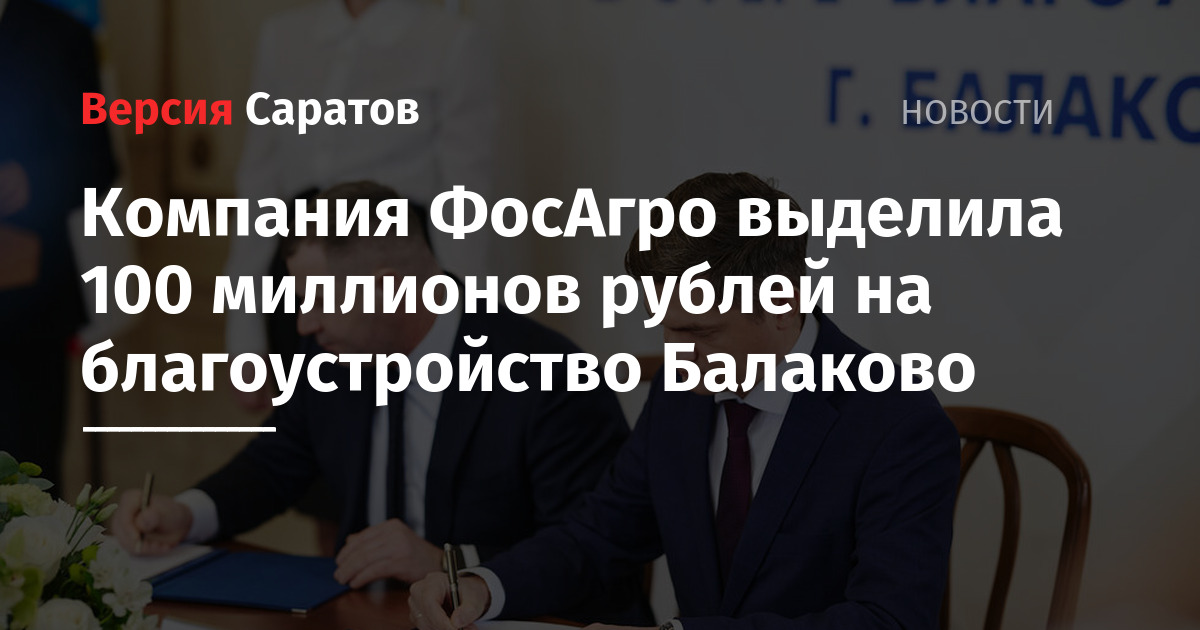Ведущий отечественный производитель минеральных удобрений ФосАгро вновь выделил 100 миллионов рублей на благоустройство Балаково. Соглашение, закрепляющее это намерение, было подписано на днях главой БМР Сергеем Барулиным и директором Балаковского филиала АО «Апатит» (Группа «ФосАгро»).