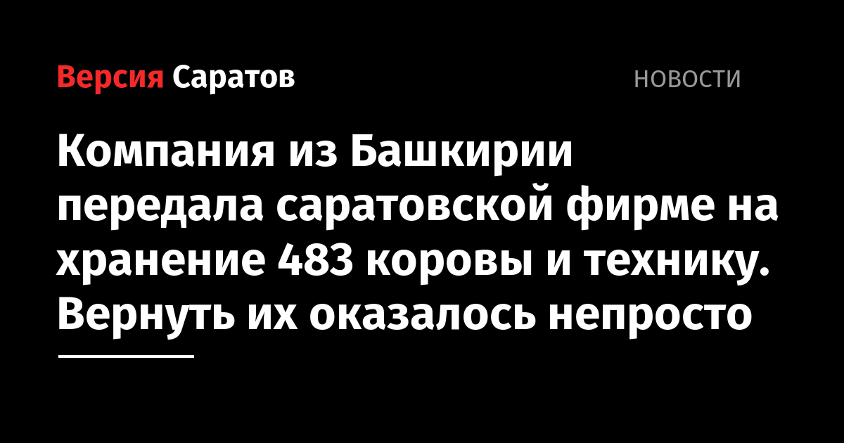 Компания из Башкирии передала саратовской фирме на хранение 483 коровы и технику. Вернуть их оказалось непросто