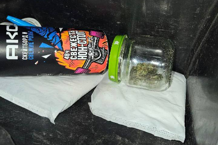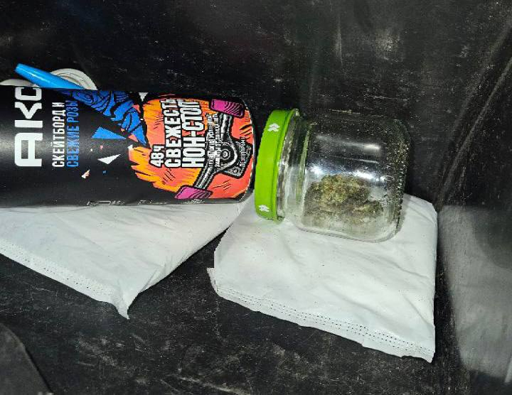 В ходе обыска в бардачке «Гранты» обнаружили банку с канабисом массой более 35 граммов. После изучения телефона у забора на 2-м Хвалынском проезде нашли тайник с закладкой массой около 1 грамма. Возбуждено уголовное дело по факту покушения на сбыт наркотиков (ч.3 ст. 30 — п. «а, б» ч.3 ст. 228.1 УК РФ).