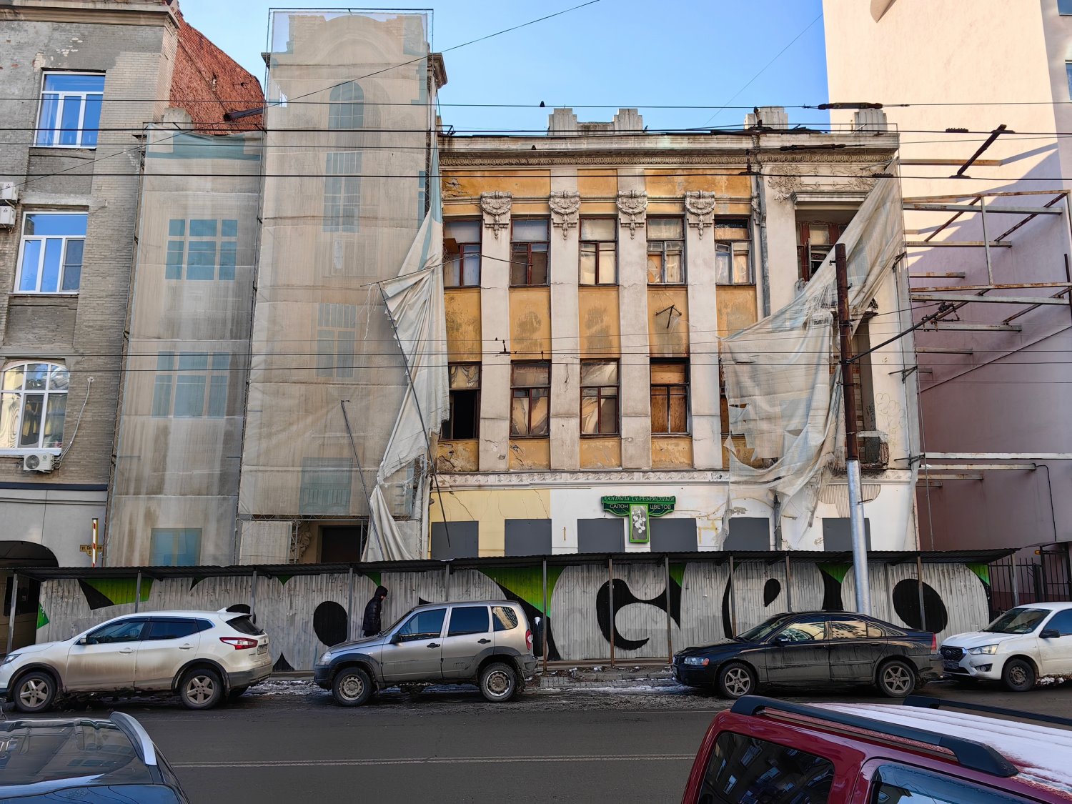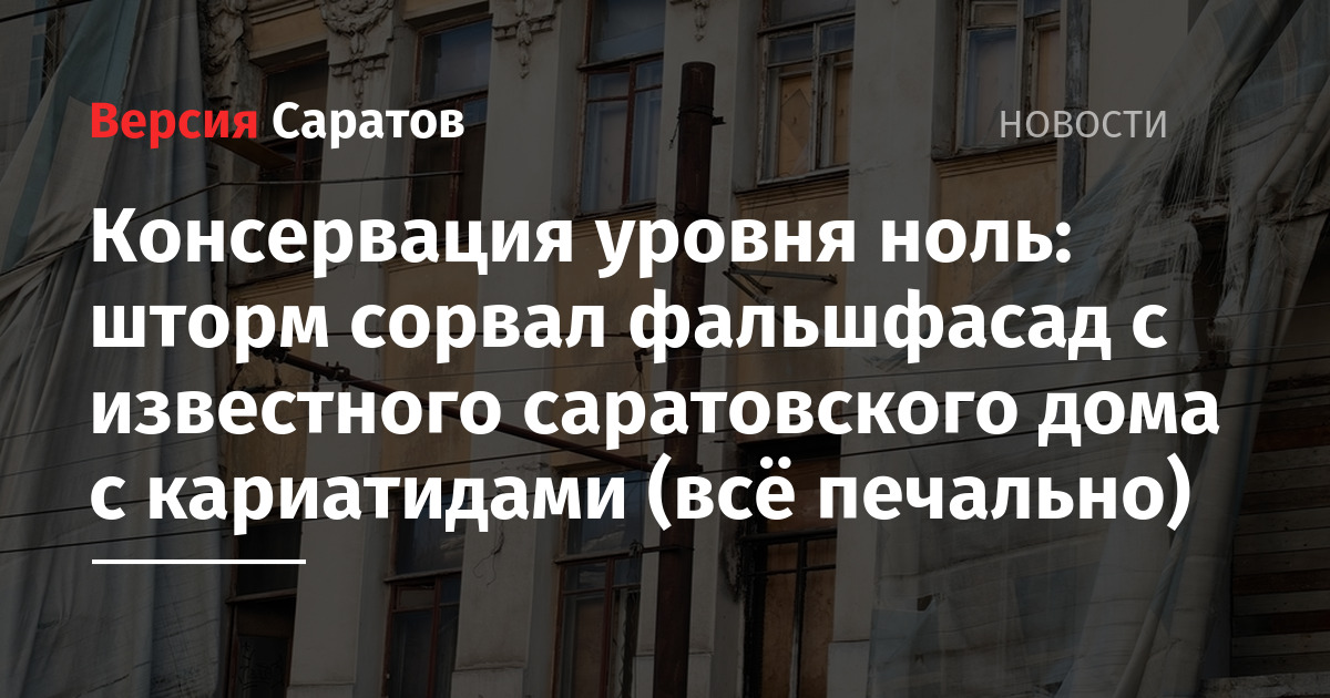 - Обнажается тьма: проданный дом с кариатидами в Саратове продолжает прозябать, проект реконструкции, на который подчинённые министра Мухина потратили 16 миллионов, инвестору не отдают (мини-интервью)