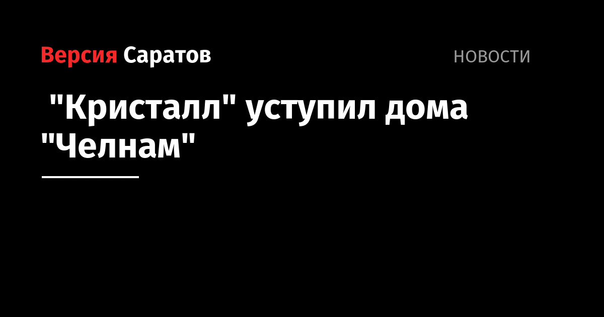 Сегодня, 7 ноября, в саратовском ледовом дворце спорта "Кристалл" саратовские хоккеисты уступили "Челнам" из Набережных Челнов со счетом 1:2. Основное время матча завершилось вничью – 1:1, в овертайме гости забили решающую шайбу, воспользовавшись численным преимуществом – у "Кристалла" отбывал удаление за подножку Сергей Рябухин. Единственную шайбу в ворота соперника в начале второго периода забил Илья Кондрашин. Матч проходил в рамках первого этапа первенства ВХЛ.