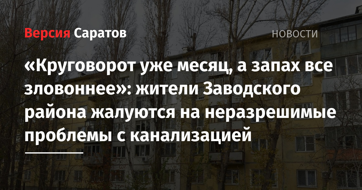 Жители Заводского района Саратова жалуются на то, что из-за длительных проблем с канализацией их жизнь стала невыносимой. Об этом пишут подписчики Telegram-канала «Саратов. Жесть 18+».