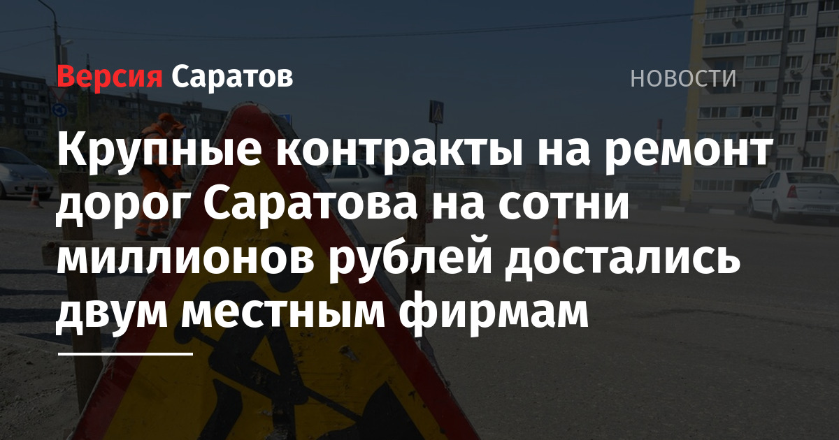 Крупные контракты на ремонт дорог в Саратове, заказчиком по которым выступал комитет дорожного хозяйства и благоустройства мэрии, получили две фирмы. Результаты определения подрядчиков были опубликованы на портале госзакупок.