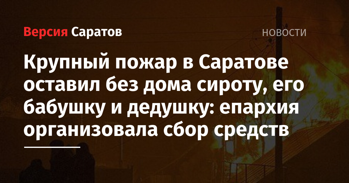 В Саратове сирота, которого воспитывают бабушка и дедушка, остался без дома из-за пожара. Об этом сообщила саратовская епархия.