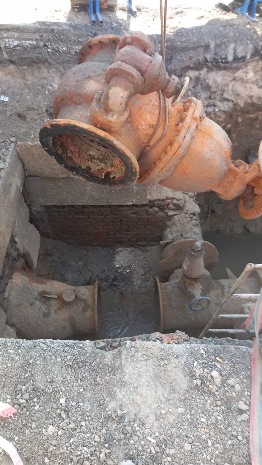 На текущий момент выполнено отключение, осуществлен сброс воды из коммуникаций, в верхних точках специалисты КВС уже демонтировали старую запорную арматуру большого диаметра (1 шт. — d1000 мм, 1 шт. — d800 мм и 2 шт. — d600 мм) и приступили к установке новых затворов. В настоящее время производится монтаж затвора d1000 мм на станции второго подъема.