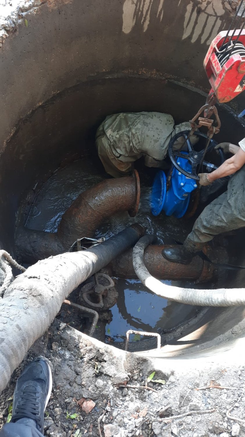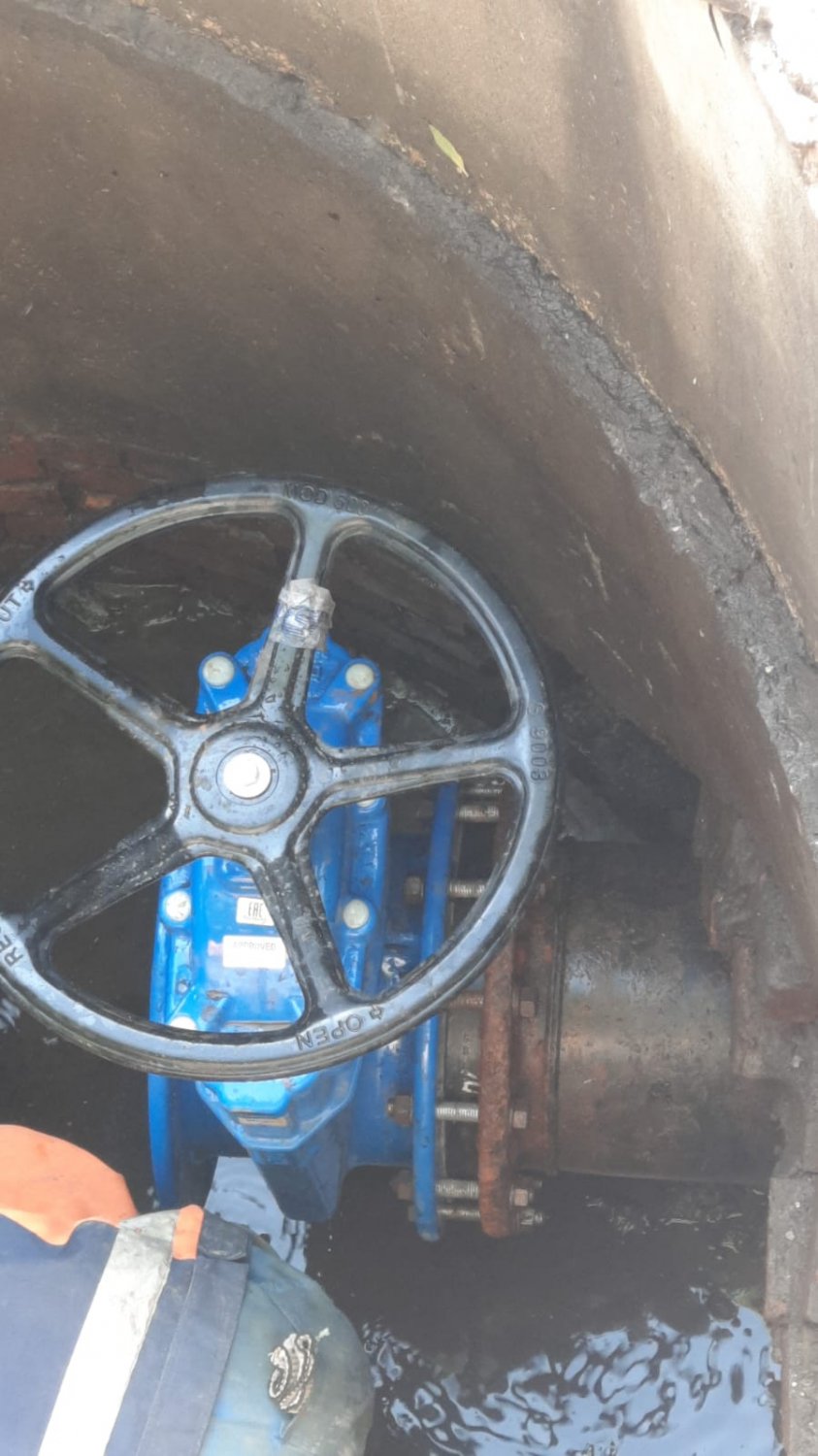 На текущий момент выполнен демонтаж старой запорной арматуры. Специалисты приступили к монтажу новых задвижек. Всего в ходе проведения работ планируется заменить 3 единицы различного диаметра (2 штуки — d300 мм, 1 штука — d150 мм).