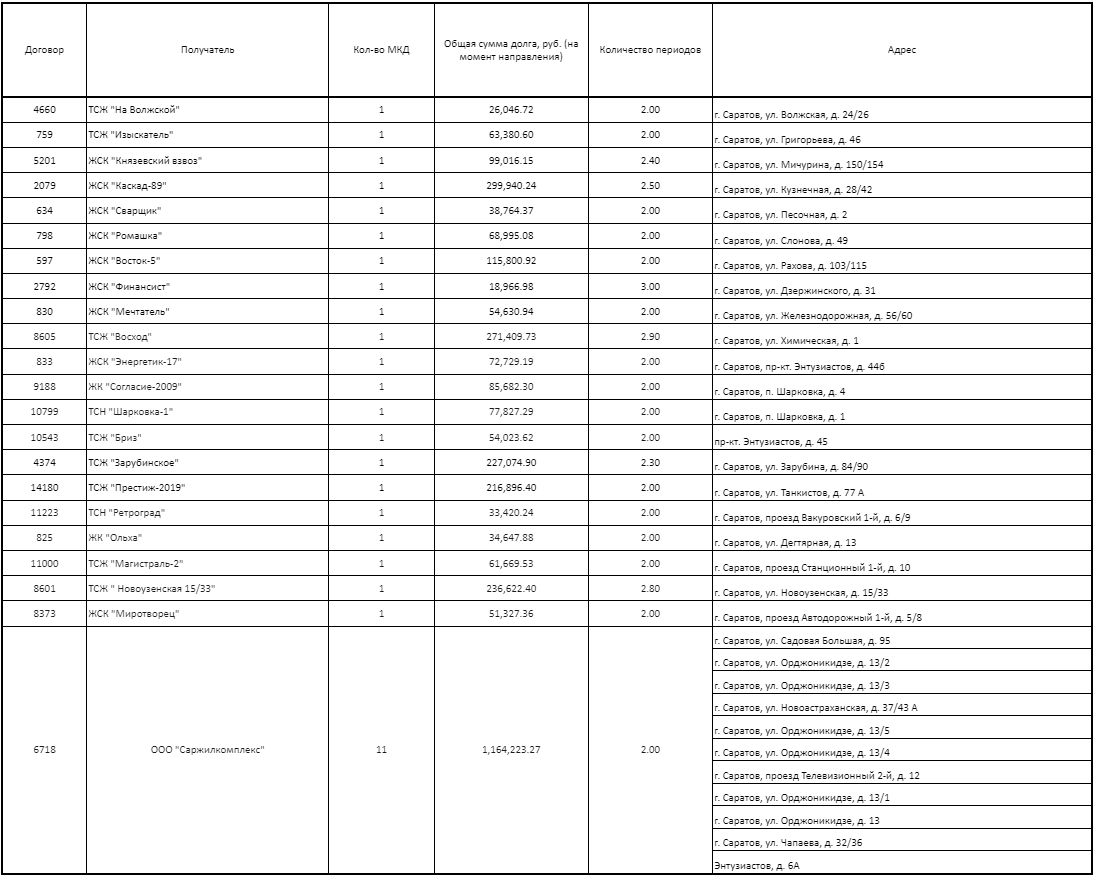 В июне и июле 2023 года по инициативе КВС переведены на прямые расчеты многоквартирные дома, которые находились под управлением ЖКС «Ракета», ЖСК «Строитель», ТСЖ «Магистраль-1», ТСЖ «Олимп», ТСЖ «Рассвет», ТСЖ «ВЕСНА», ЖСК «Аист-99», ЖСК «Монолит-1», ТСЖ «Весенняя, 10», ТСЖ «Оптимист», ЖСК-3 «Молодежный», ТСН «Мичуринский», ТСЖ «ПОЛИГОН С-21», ЖСК при областном управлении связи, ООО УК «Олимп», ООО УК «ВЕСТА-С», ЖСК «Кировец», ЖСК «Ветеран-82», ТСН «Сокол». Общая сумма задолженности данных организаций — более 7 млн рублей.