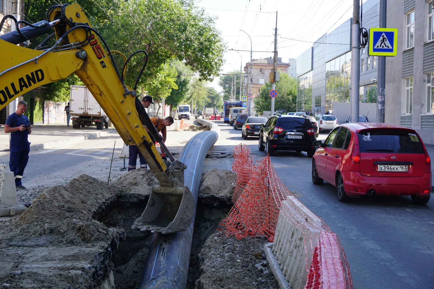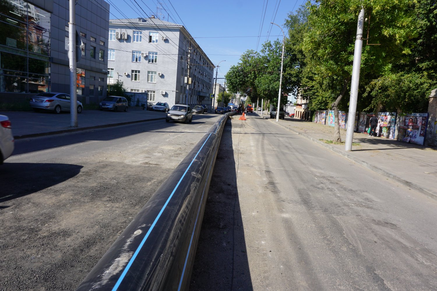 Кроме того, в рамках комплексной реконструкции проложены новые полиэтиленовые трубопроводы d315 мм (протяженностью 410 метров) и d225 мм (130 метров) на участке от улицы Радищева до дома № 157 (по нечетной стороне) и дома № 128 (по четной стороне) по улице Чернышевского.
