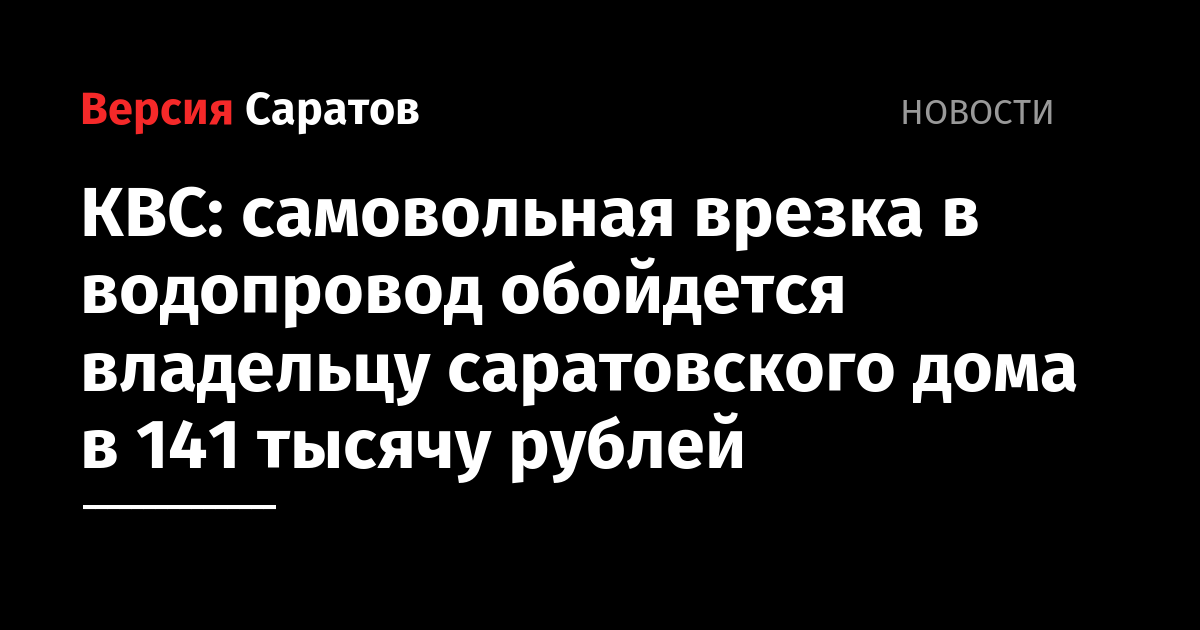 КВС: самовольная врезка в водопровод обойдется владельцу саратовского дома в 141 тысячу рублей