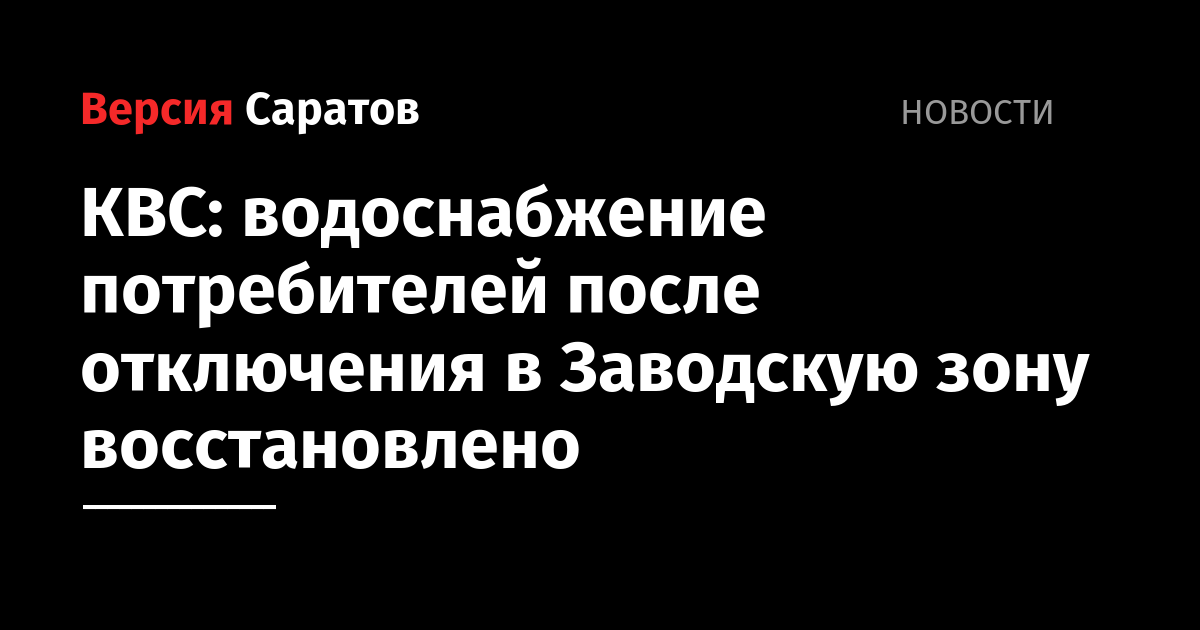КВС: водоснабжение потребителей после отключения в Заводскую зону восстановлено
