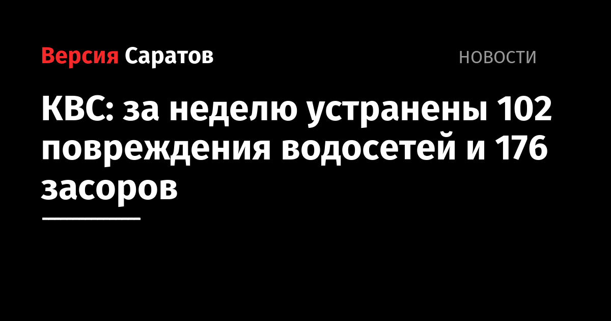 За период с 23 по 30 октября специалистами ООО «КВС» устранены 102 повреждения городских водопроводных коммуникаций. В 16 случаях для проведения работ было необходимо временно ограничивать холодное водоснабжение потребителей. 26 повреждений произошли на трубах малого диаметра (менее 100 мм). 67 течей устранены на водоводах от d100 до d300 мм (в основном — внутридворовые, внутриквартальные сети), 9 повреждений ликвидированы на трубопроводах диаметром больше 300 мм.