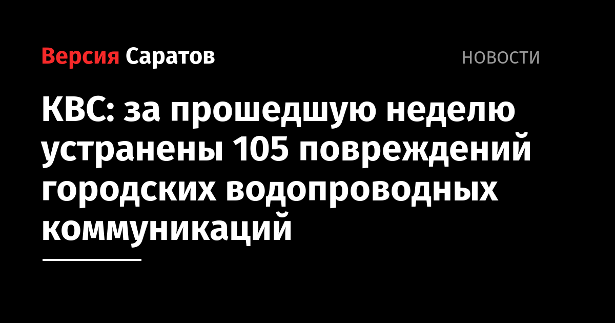 За период с 20 по 27 ноября специалистами ООО «КВС» устранены 105 повреждений городских водопроводных коммуникаций. В 21 случае для проведения работ было необходимо временно ограничивать холодное водоснабжение потребителей. 25 повреждений произошли на трубах малого диаметра (менее 100 мм). 68 течей устранены на водоводах от d100 до d300 мм (в основном — внутридворовые, внутриквартальные сети), 12 повреждений ликвидированы на трубопроводах диаметром больше 300 мм. За неделю отремонтированы и замены 2 пожарных гидранта и 2 водоразборных колонки.
