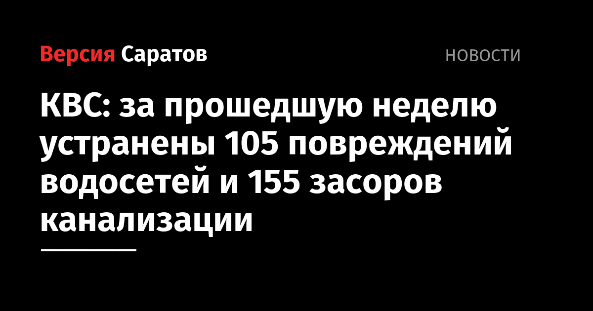 За период с 6 по 13 февраля специалистами ООО «КВС» устранены 105 повреждений городских водопроводных коммуникаций. В 11 случаях для проведения работ было необходимо временно ограничивать холодное водоснабжение потребителей. 25 повреждений произошли на трубах малого диаметра (менее 100 мм). 75 течей устранены на водоводах от d100 до d300 мм (в основном — внутридворовые, внутриквартальные сети), 5 повреждений ликвидированы на трубопроводах диаметром больше 300 мм. За неделю отремонтированы 5 пожарных гидрантов и 2 водоразборных колонки (ВК), заменена 1 ВК.