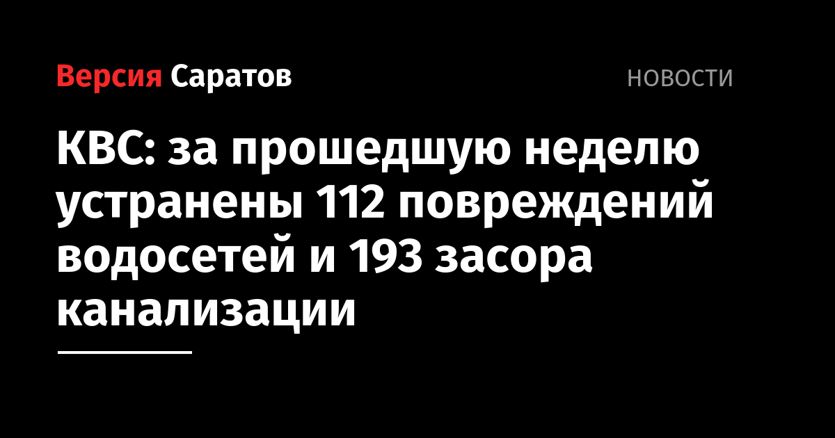 За период с 11 по 18 декабря специалистами ООО «КВС» устранены 112 повреждений городских водопроводных коммуникаций. В 20 случаях для проведения работ было необходимо временно ограничивать холодное водоснабжение потребителей. 19 повреждений произошли на трубах малого диаметра (менее 100 мм). 80 течей устранены на водоводах от d100 до d300 мм (в основном — внутридворовые, внутриквартальные сети), 13 повреждений ликвидированы на трубопроводах диаметром больше 300 мм.